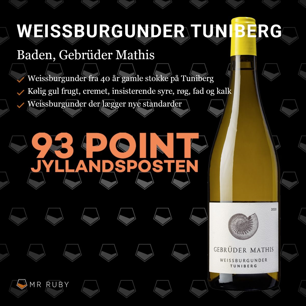 "Når først man lige fanger frekvensen, er der ingen vej tilbage. Denne liflige, fløjlsbløde væske løber sydover med så foruroligende hast, at indholdet synes at forsvinde for øjnene af en. Mathis’ ufiltrerede økoweissburbunder dyrker vitterlig sin helt egen stil, og hvilken liflig en. Helklasepres, spontant gæret på fad efterfulgt af 12 måneders lagring på brugte barrique har givet en vanvittig lækker, nuanceret og indbydende vin; velduftende, let sløret og ekstremt cremet med både dybde og veldoseret vaniljerøget charme. Oser af dåsefersken, citrontimian, nybagt pæretærte med kardemomme. Smagen er båret af en milde og mælket frugtsyre og fløjlsblød tekstur, og her er godt med smæk på frugten, og der kommer ovenikøbet lidt røget smør, A38, karamel og sur lie-noter til i den lange og varme finale. Forbløffende lækker og karakterfuld."