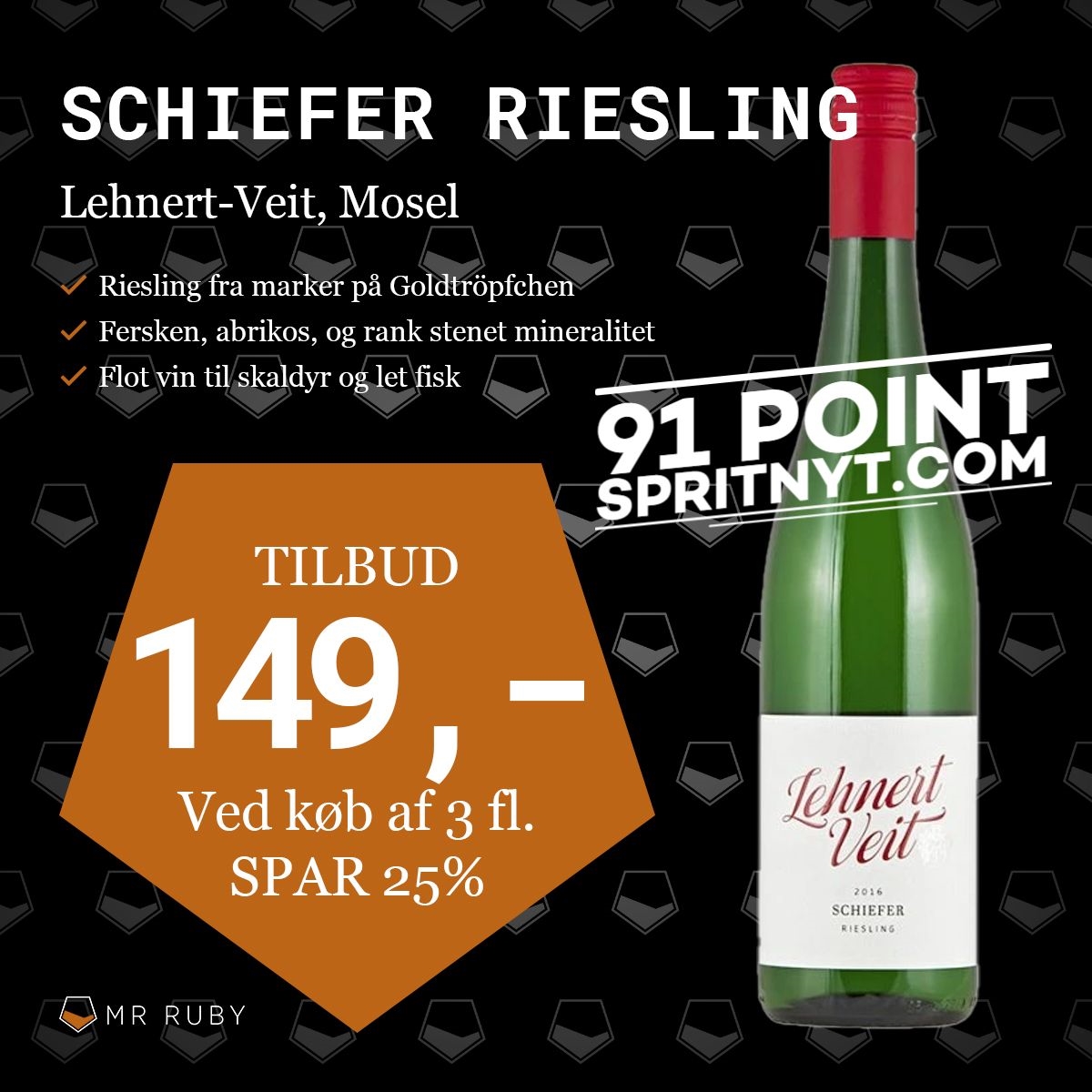 "Sprød og meget frugtig og umiddelbar riesling fra mark domineret af skifer. Fine abrikos, citrus og blomsternoter. Pakket ind af en fin syre og fremstår meget klar nu. Sprød lang afslutning."